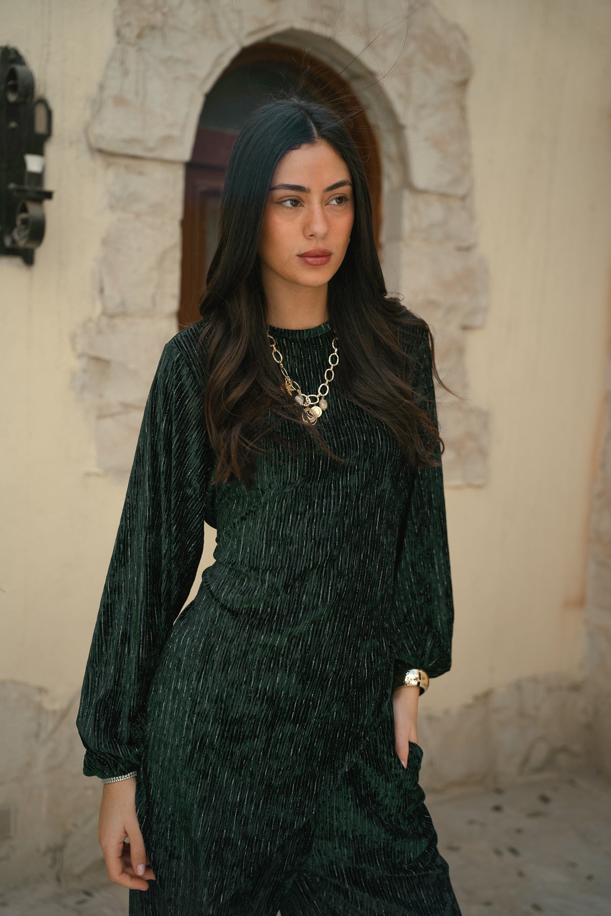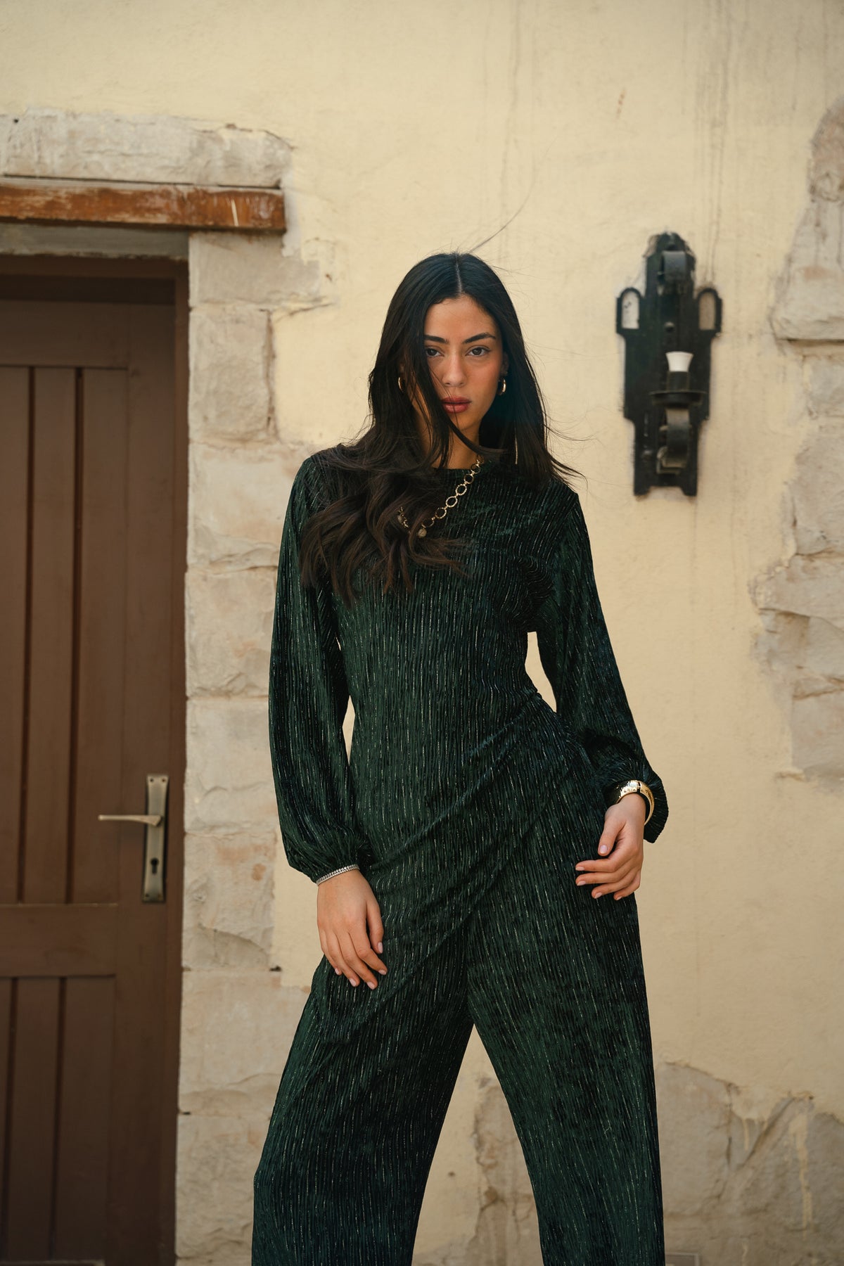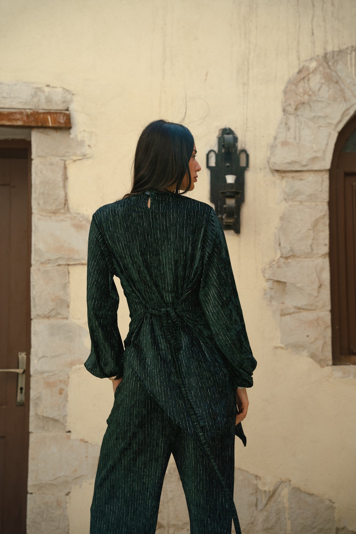 Flowy wide-leg pants complete the look, making it effortlessly elegant yet comfortable. Perfect for Ramadan gatherings, dinners, and evening occasions.