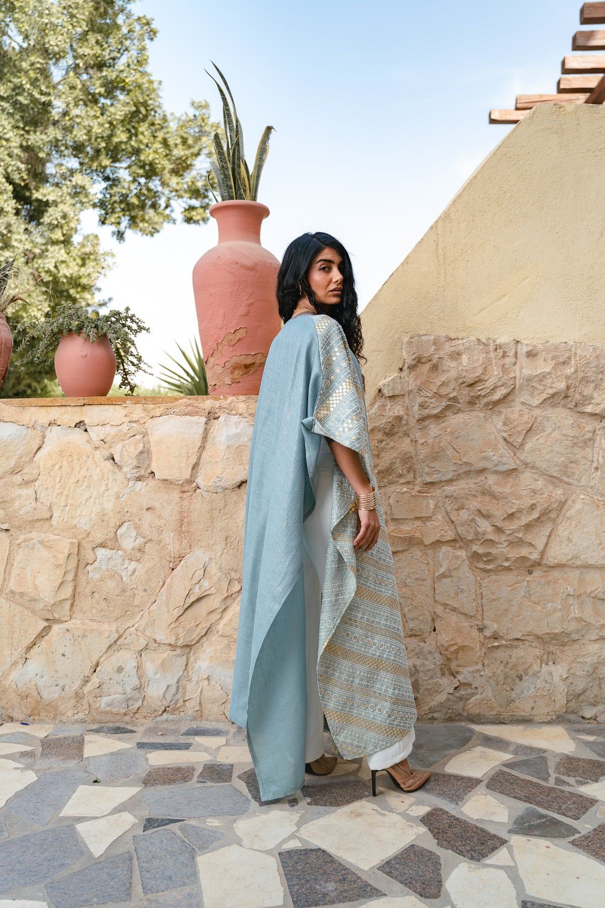 A refreshing take on traditional Indian inspiration, crafted from breathable linen and elevated with delicate embroidery. The Sari Kimono blends heritage detailing with a modern silhouette, making it a standout piece for Ramadan without feeling traditional or expected.