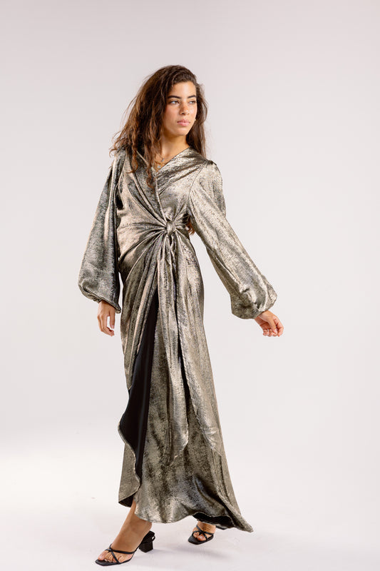 Shimmer Drape Gown in metalic-green