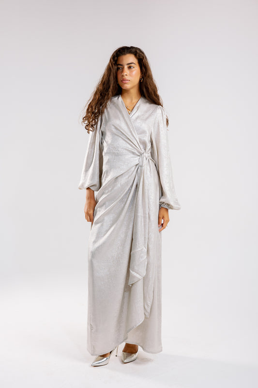 Shimmer Drape Gown in white
