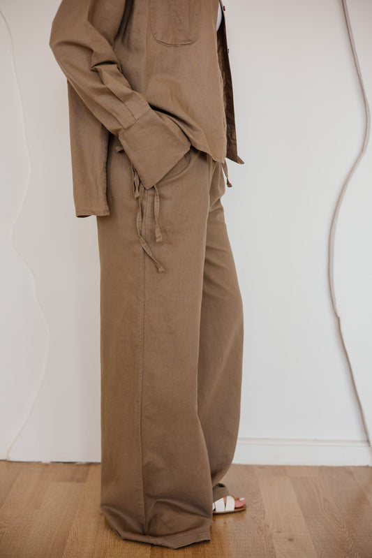 Pure linen pants in mocha-brown