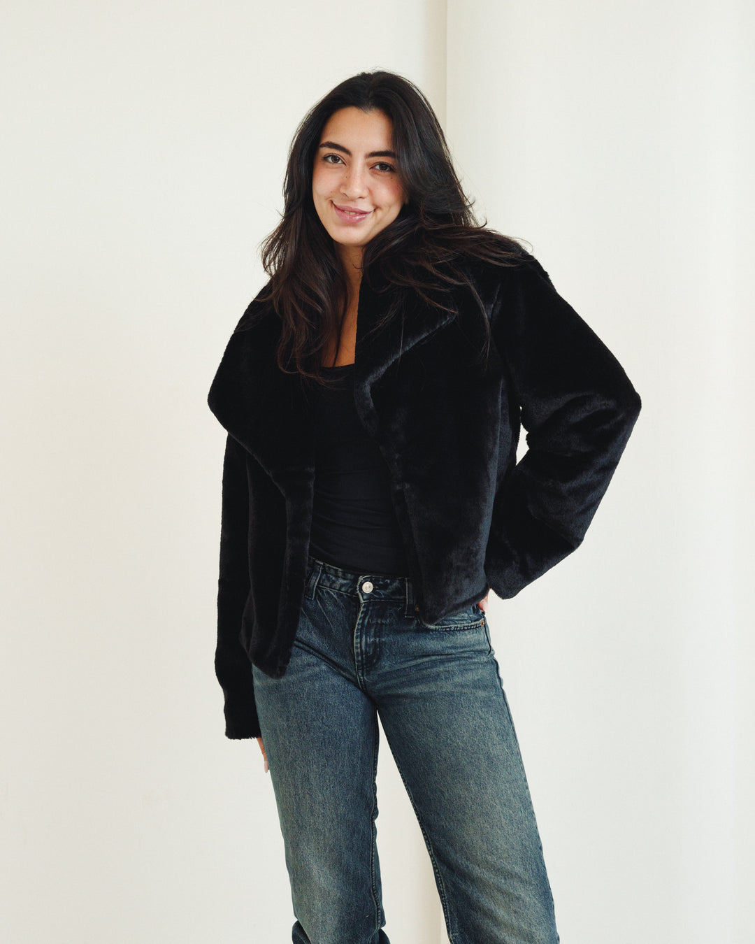 Soft Fur Jacket in Black