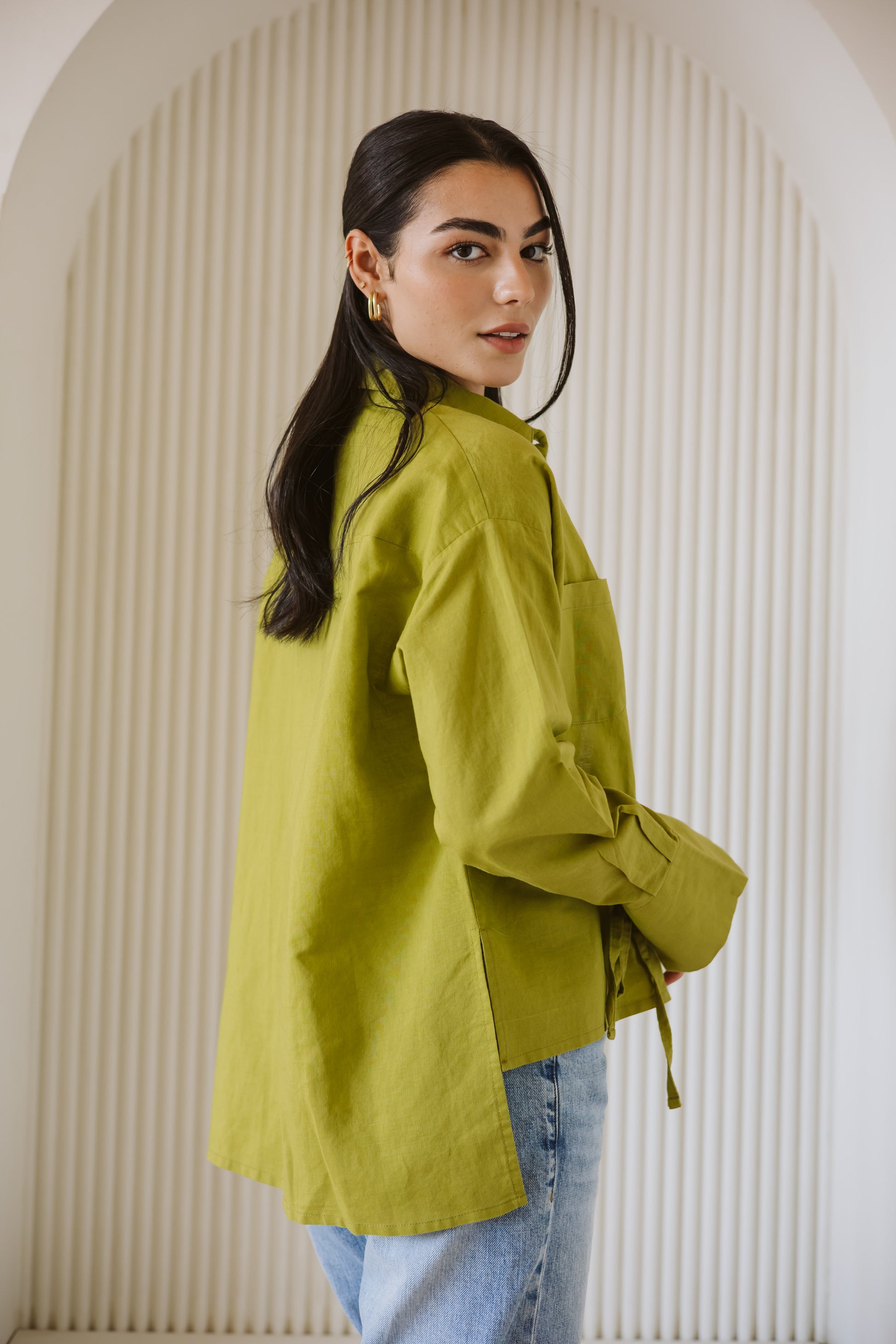 Everyday linen shirt in-lime green