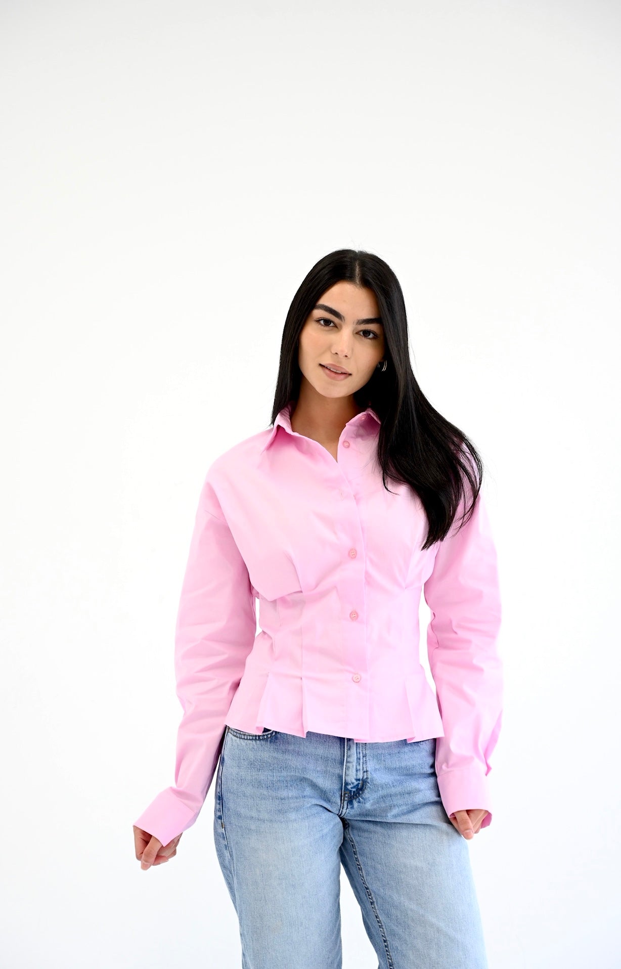 Tailored to flatter, this poplin shirt brings structure with a feminine twist. Featuring a cinched waist and pleated hem, it’s your new go-to for a crisp, clean, and effortlessly chic look. Made from breathable poplin cotton for all-day comfort.